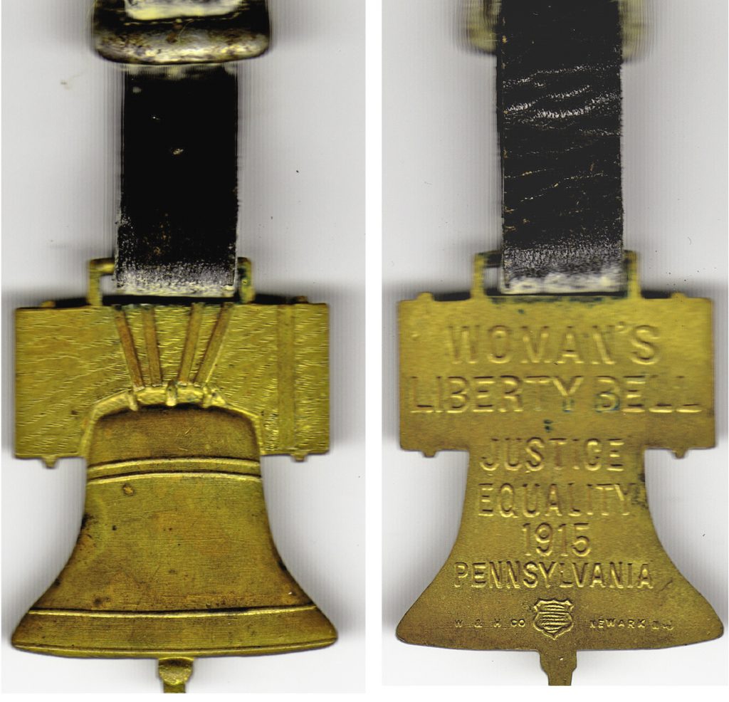 One of the demonstrations that the committee did endorse was that of Katharine Wentworth Rushenberger, who announced that she planned to have a replica cast of the Liberty Bell to be known as the “Women’s Liberty Bell” or “Justice Bell.” The only change in the replica from the original was to be an addition to the inscription to include the phrase “establish justice.” She also planned to bind the Bell’s bronze clapper and keep it silent until November 2, 1915 when she hoped that the proposed amendment to the [Pennsylvania] state constitution allowing women to vote would be passed.