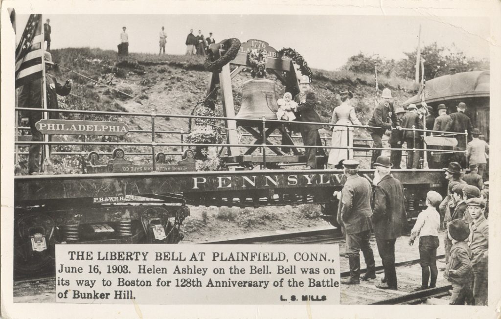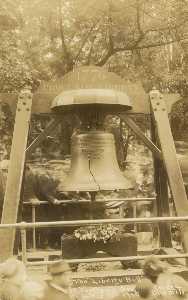 There are only five of these Trinkle albums known to exist. The postcards I’ve been fortunate enough to collect are for the most part unmarked. I have been unable to determine if any of them are part of the famous Trinkle Album. I’ve been lucky enough to find a card showing the train stop in Elizabethtown, Cleveland, Ohio; Lima, Ohio; Portland, Oregon; and several from Seattle, Washington. On the bell’s return trip to Philadelphia – a trip that took a more southern route across the country, I found one from the stop in El Paso, Texas, but several are unidentified locations.