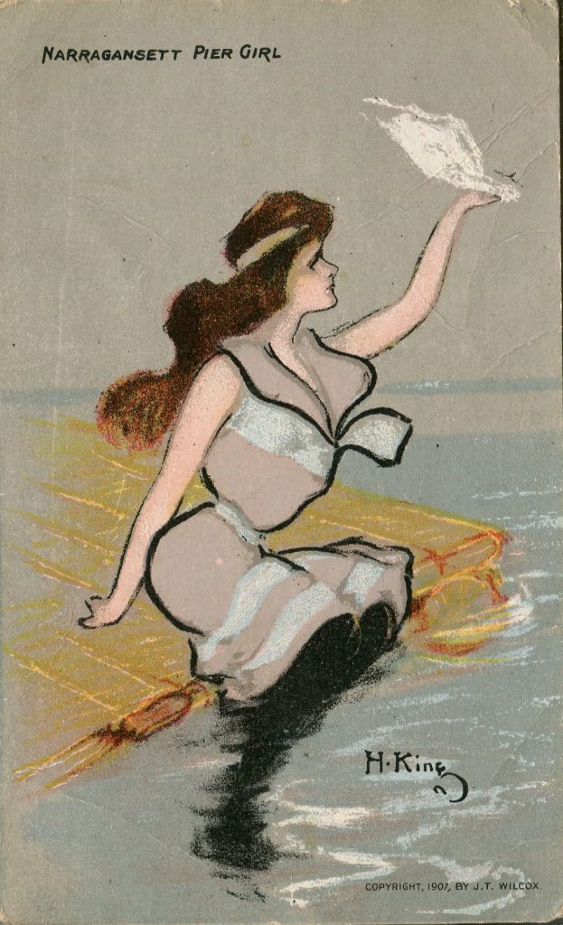 Four examples of the Hamilton Bathing Beauty Girl postcards are here: Atlantic City Girl, Long Branch Girl, Newport Girl and Narragansett Girl. Others in the 12-card* series are: Asbury Park Girl, Bar Harbor Girl, Cape May Girl, Coney Island Girl, Larchmont Girl, Manhattan Girl, Palm Beach Girl, and Ocean Grove Girl.