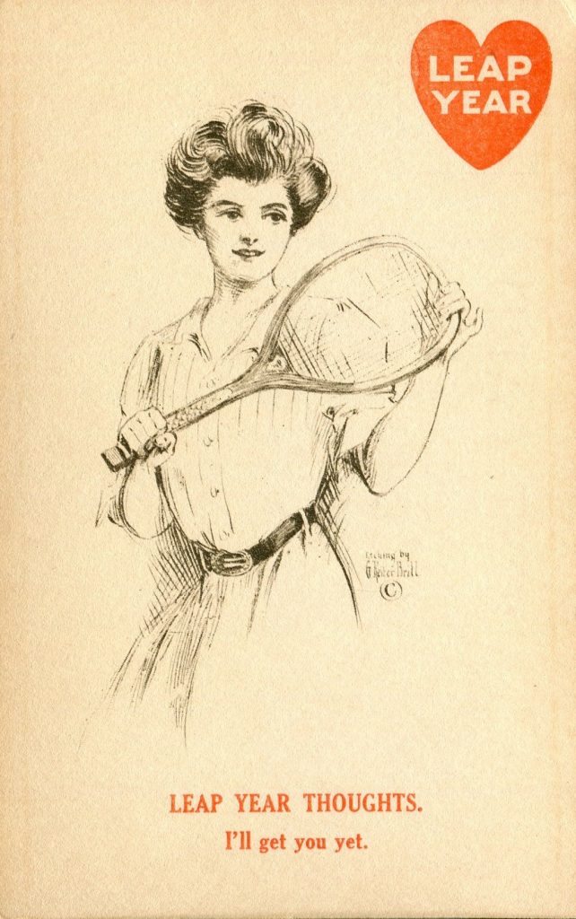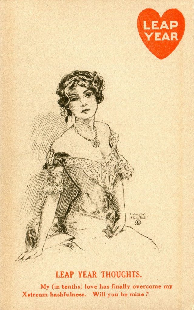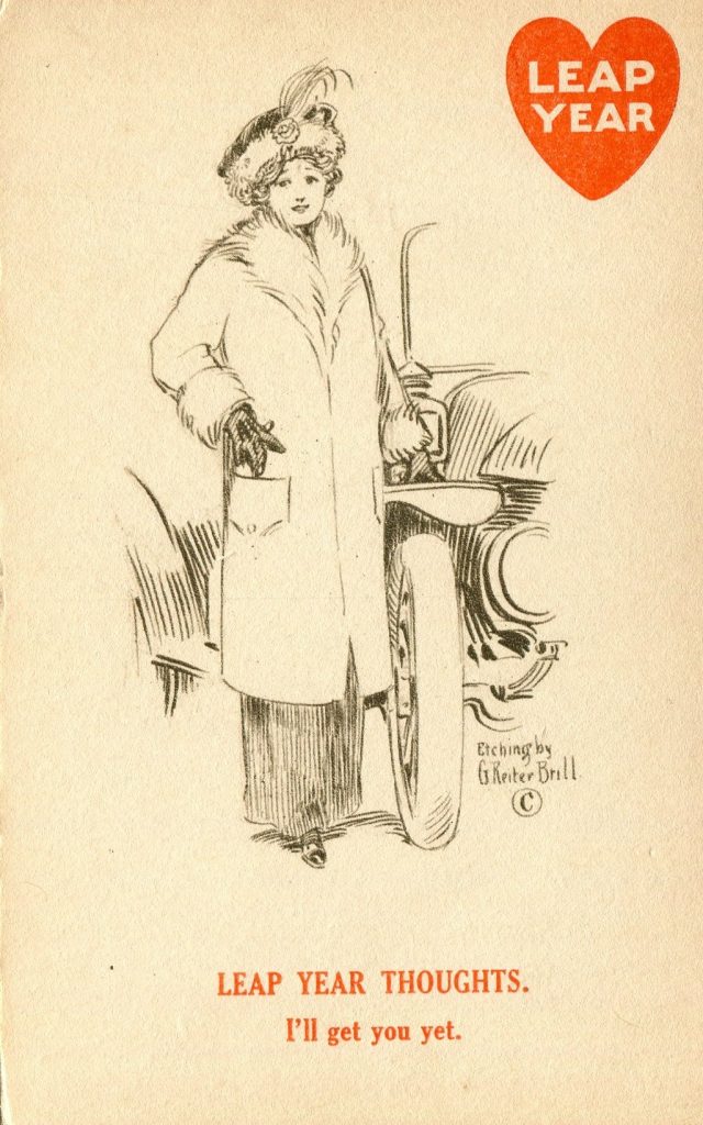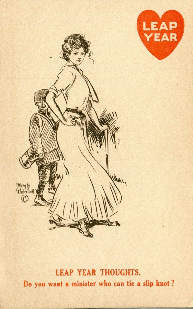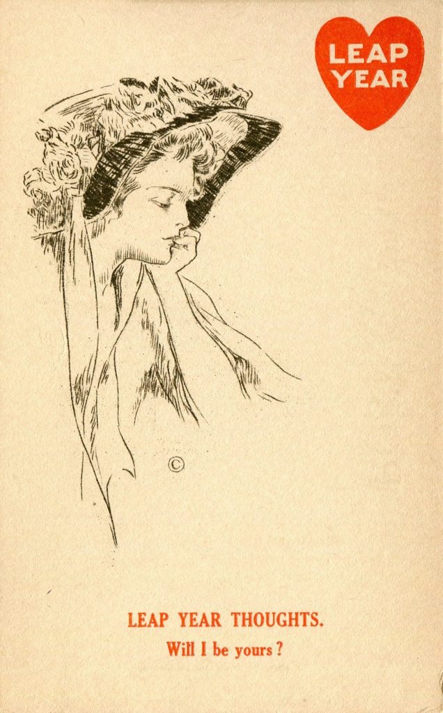 Knowing that anything makes a good postcard topic, let’s consider Leap Year postcards.