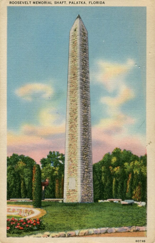 Visitors are permitted to drive into the park. At the gate, the 80-foot tall Franklin Delano Roosevelt Memorial Shaft greets every tourist. Properly titled a shaft instead of an obelisk, it was dedicated to our 32nd president in appreciation of the government support for the project. Beyond is the Court of States, where each state of the union is honored by a rough-cut limestone column and flagpole from which the state’s flag is displayed at 45 degrees.
