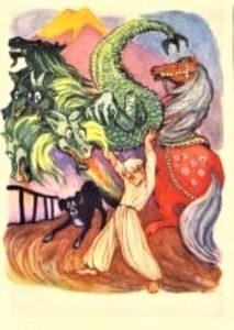 rainian card, showing a five-headed dragon is amusing for its color and action. The young lad is perhaps a Ukrainian version of Saint George (the dragon slayer). Look at the bewilderment in the eyes of the dragon: priceless.