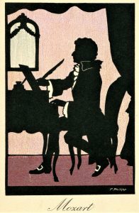 In addition to the artists mentioned in this piece look for silhouettes signed by G.A.S., T.v. B., and S.K. The Mozart silhouette above is by Felicien Phillipp.