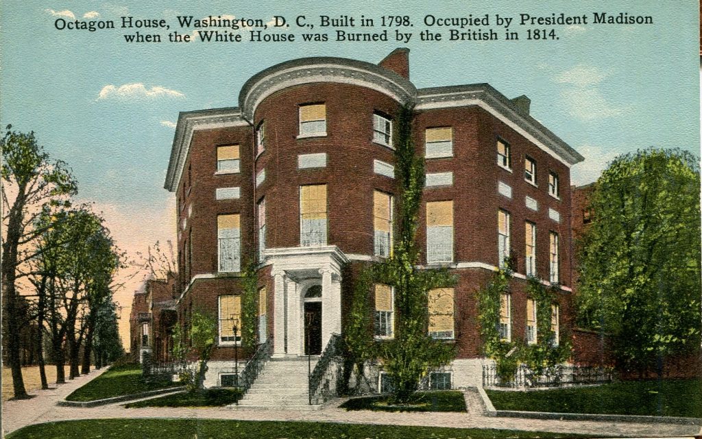 The portrait was put in the care of two New Yorkers. Since the Madisons could no longer live at the White House. They moved, at the invitation of John Tayloe, to the rather remarkable Octagon House.