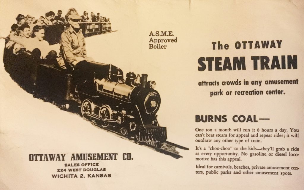 “Chance, who worked for them and knew all about the trains, went on to build Chance Rides Industries, (https://www.chancerides.com). Today, they are the world’s largest amusement ride manufacturer, they make the big Ferris wheels and ship them all over the world, and they are right here in Wichita. It all started with the Ottaway Steam Train.”