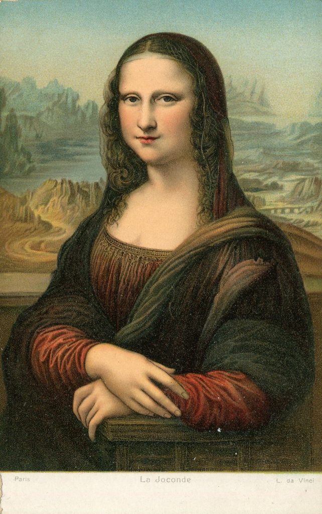 The Louvre is the pride of France. If you visit Paris and don’t go to the Louvre, it would be like a visit to Disneyland without riding Space Mountain. The Musée du Louvre owns more than 380,000 objects and displays 35,000 works of art in eight curatorial departments. The museum collection includes many portraits, like the one below, but not all of them are as famous. The Mona Lisa by Leonardo da Vinci, has appeared on money, greeting cards, posters, stickers, playing cards, stamps, and lots of other things – including postcards.