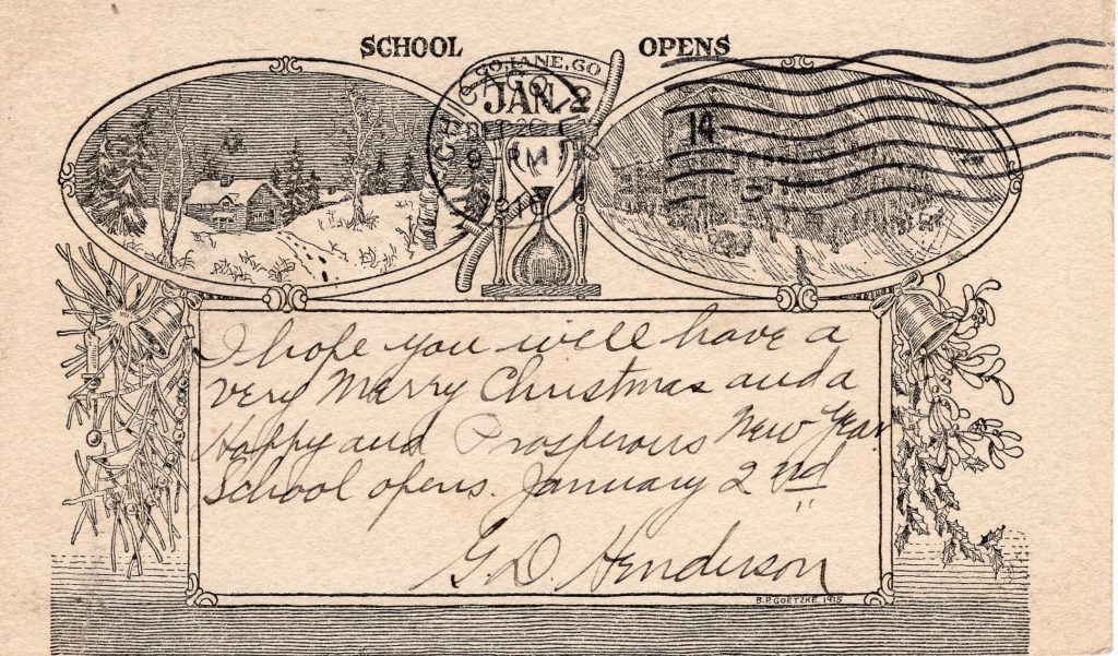 The card is without a question, a reminder to the students in the Chicago School System that the faculty wished their students a happy holiday, but they should keep in mind that school resumes after the holiday and they should be prepared.