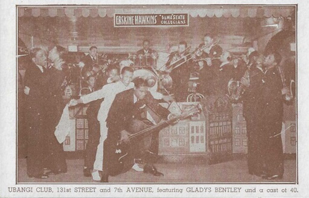 As far as we can tell, the Ubangi was an openly gay club that nobody had trouble with as long as it was up in Harlem. It’s the earliest card I know (from NYC) that featured gay couples dancing. It doesn’t show Gladys Bentley but she was an out lesbian performer who dressed in a gold lame tuxedo and top hat and said dirty things to the girls. The unique arrangement of the musicians on this card could also be described as “provocative.”