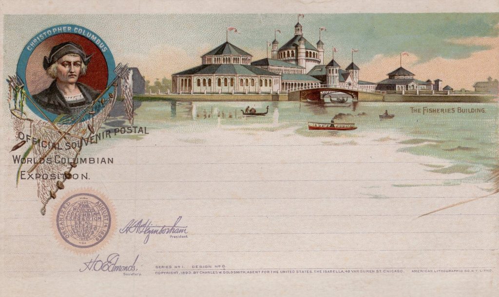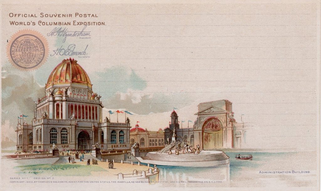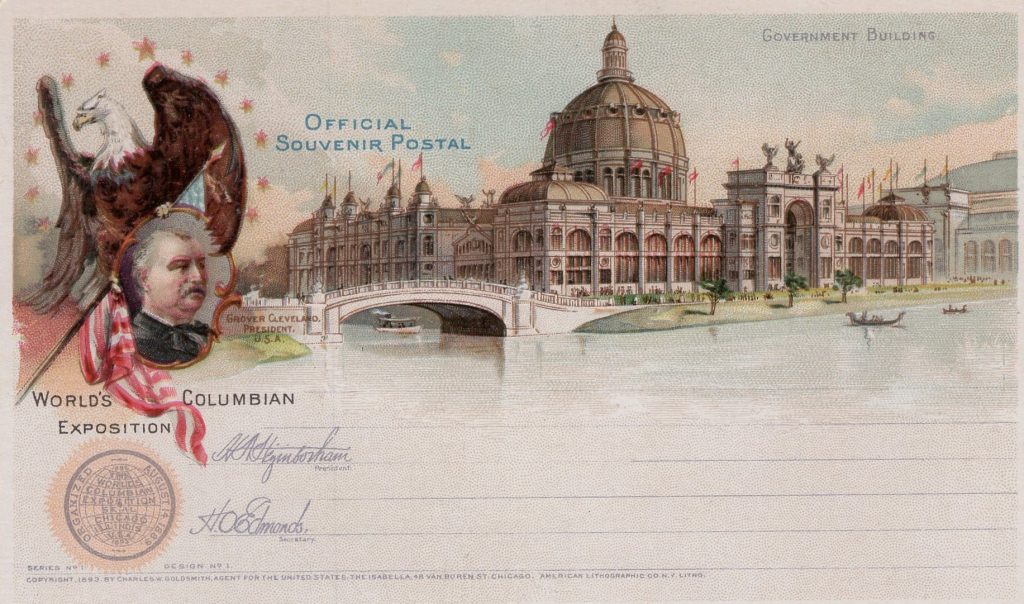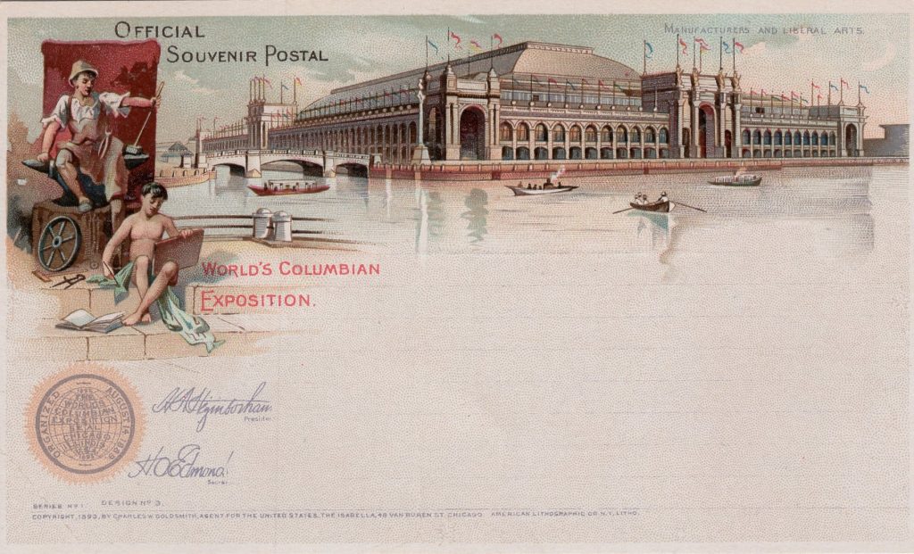 Planning for the 1893 Columbian Exposition began in 1890. Charles W. Goldsmith arrived in Chicago in late 1891 as a representative of the American Lithographic Company of New York City. The purpose of his move was to obtain a contract to produce official postcards for the World’s Fair.