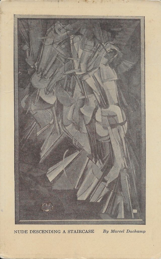 The artwork that generated the most headlines was Duchamp’s now-famous painting Nude Descending a Staircase (1912). To the eyes of Armory Show visitors, there was no nude figure in sight. Ironically, nowadays the Duchamp is the rarest and most desirable of the postcards.