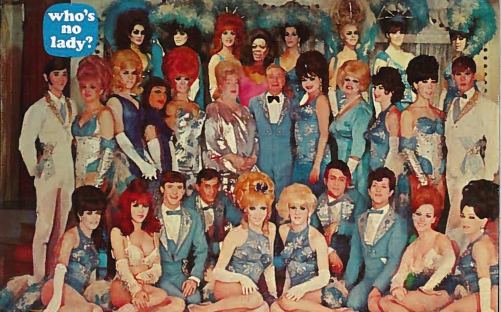 Although the staff and performers were largely gay, the audience was decidedly straight – urban and suburban middle to upper-class couples seeking an evening of sophisticated voyeuristic entertainment. No one was coming down to express or have a confrontation with their own sexuality. The rules of social distancing allowed them to gawk but not touch. When the drag queens performed, it was under a more euphemistic frame of reference, what today we might call a hetero-normative context, and called “female mimic” or “femme impersonator.”