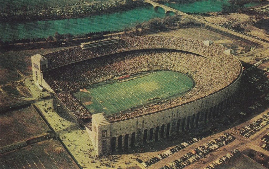 Moving down the east coast to the city of brotherly love, Philadelphia’s Municipal Stadium did not have a college football team as a tenant. Municipal Stadium’s place in college football history is secured by hosting forty-one Army-Navy football games between 1936 to 1979. Once one of college football’s premier matchups, Army and Navy duked it out on neutral territory midway between West Point and Annapolis on the Saturday after Thanksgiving. The Pennsylvania Railroad would construct a temporary station in the Greenwich Freight Yard next to the stadium to provide same day service for over 30,000 spectators on forty trains. Opened in 1926 as Sesquicentennial Stadium, it originally seated 102,000 fans. The stadium was renamed in 1964 to honor President John F. Kennedy. Structural deterioration necessitated its demolition in 1992.
