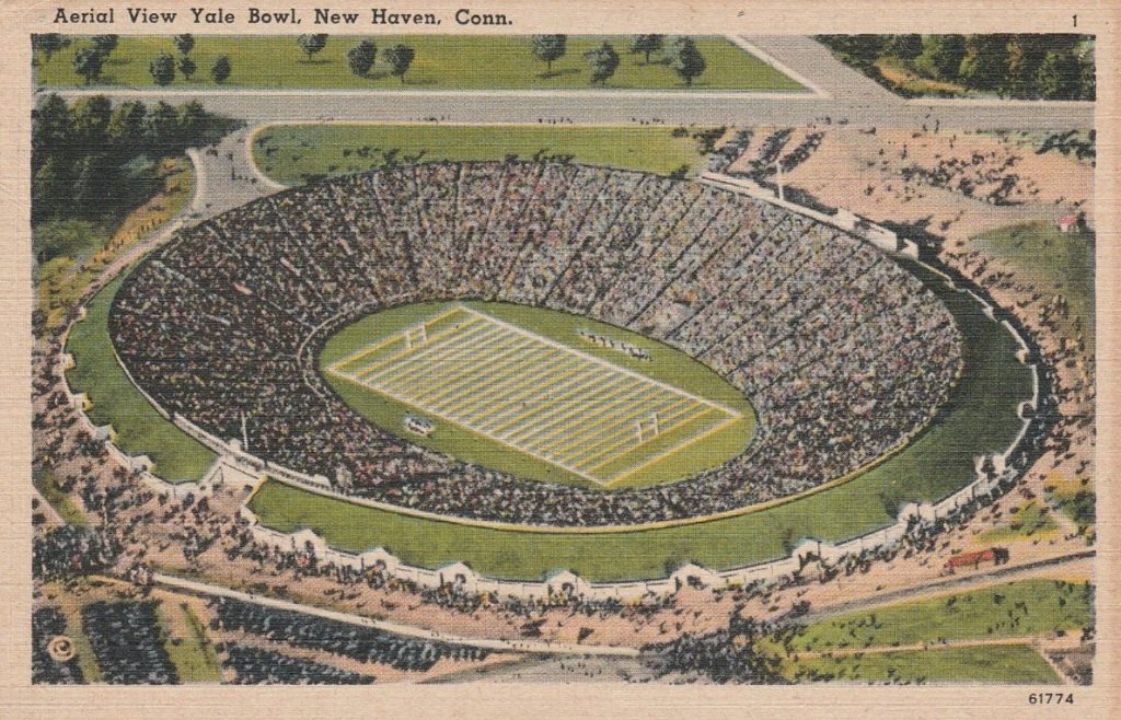 Harvard’s archrival, Yale, plays in the Yale Bowl. The Yale Bulldogs began playing in 1872. The Yale Bowl opened in 1914 and seated 71,000 fans. It was the first elliptical bowl shaped stadium in the United States and inspired the design of other stadiums. When it opened, there were no spectator restrooms. I imagine that put a crimp in beer sales. Yale and Harvard play “The Game” in November at the end of the football season and it is the second oldest continuing rivalry. Many football traditions began at Yale and Harvard such as team mascots and fight songs.