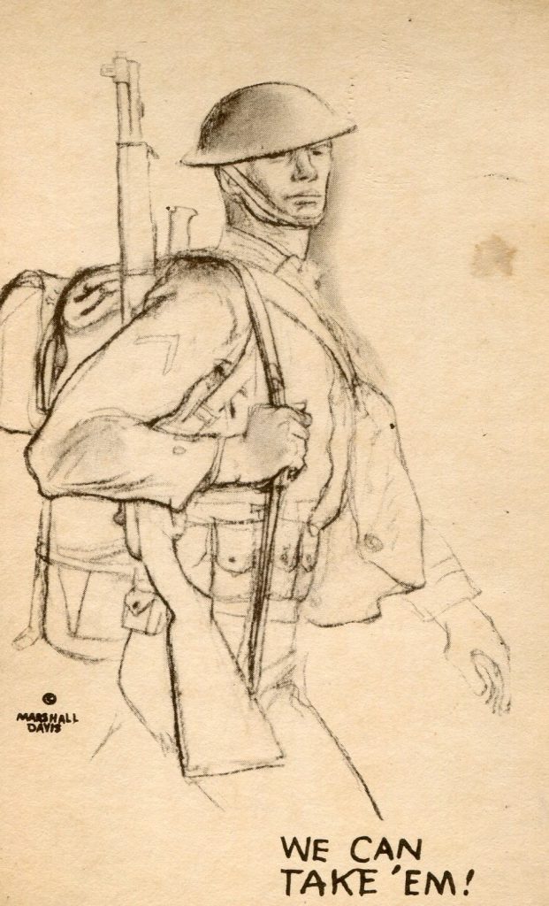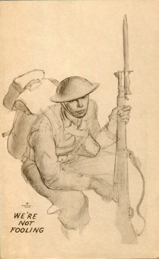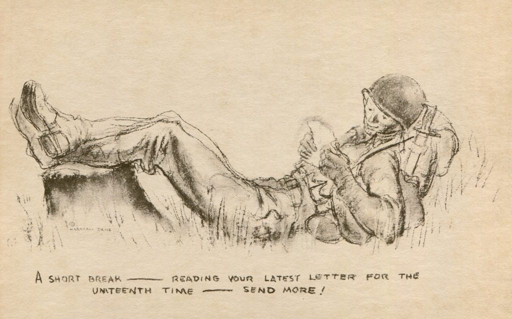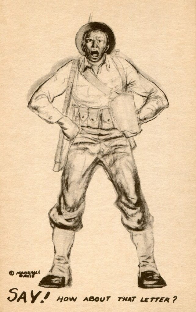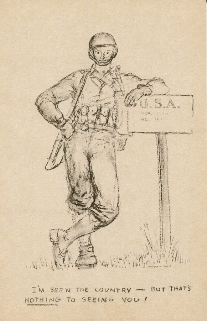 I am soon putting on eBay for sale the r8 I’M DO’N OK, HOW ARE YOU? from a U.S. Army Cpl. to his girlfriend? postmarked from Camp Forrest, Tennessee in April, 1943. Is the sketch of a WWI or a WWII soldier?