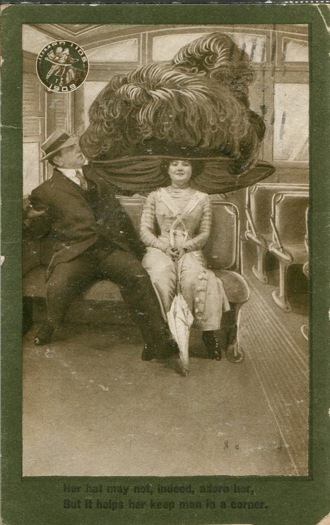 So large were these hats, that women were required in many places to remove them while attending the theater.
