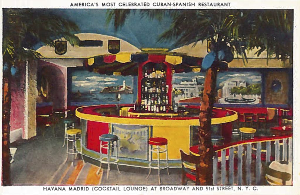 Coming at a historical moment when many young New Yorkers were seeking to shake off wartime doldrums and coupling was in the air, many could not resist a visit to venues in Greenwich Village, Spanish Harlem, Upper Broadway, The Lower East Side – now dubbed La Loisaida – and the Bronx, to learn a few moves and spice up the dance floors. Postcards of the era, illustrating the stiff competition going on between the nightclubs outdid each other in stylishness and verve.