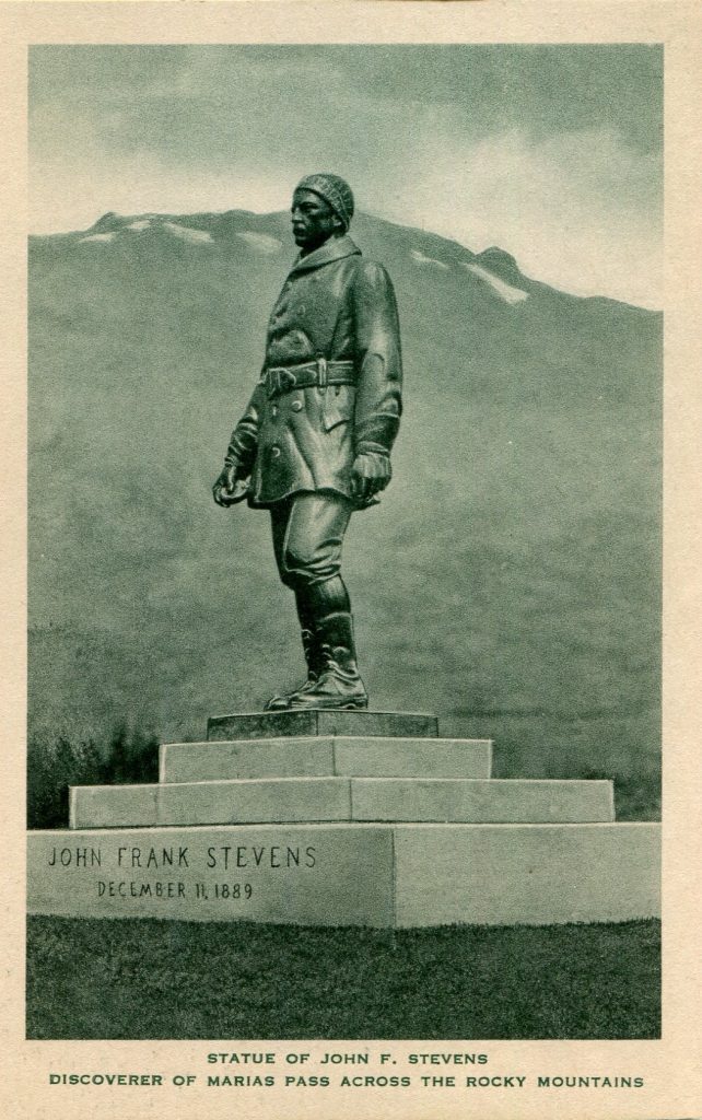No. 8 – John Stevens was born in Maine, lived in Washington, and died in North Carolina, but this statue of him stands in a state where he made his most important discovery. The postcard is one published by the Great Northern Railway of scenes along their railroad network. NAME THE STATE!