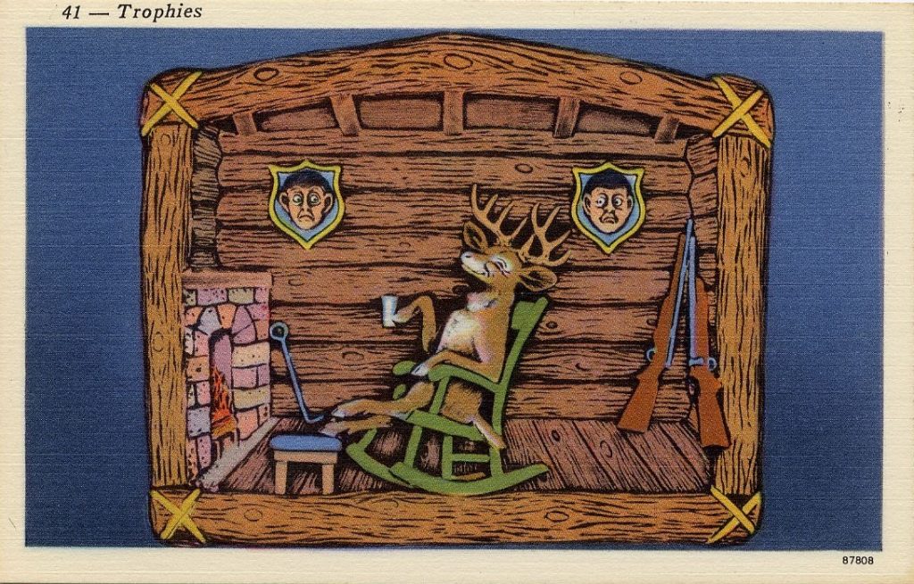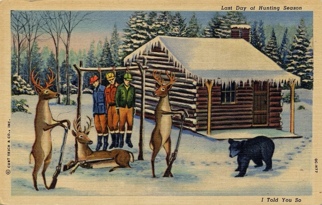 At first glance one might think these are postcards made for people who aren’t keen on hunting, but on the contrary, I think what they really show is that hunters have a sense of humor