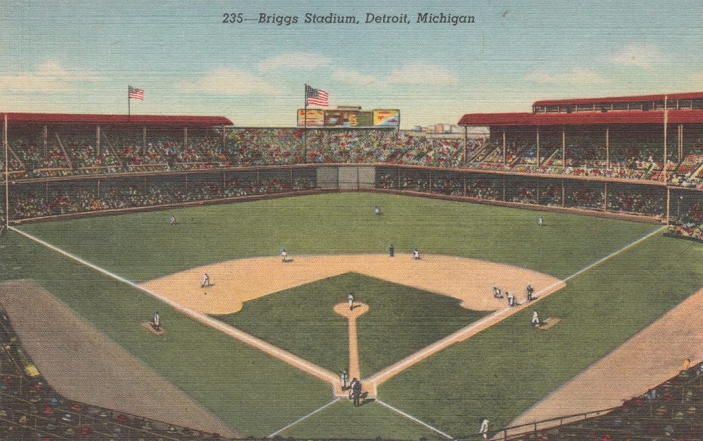 The corner of Michigan and Trumbull was the home of major league baseball in Detroit for over a century. Detroit’s Tiger Stadium, previously named Navin Field (1912-1937) and Briggs Stadium (1938-1960) after prior owners of the team, opened in 1912, replacing a ballpark built in the 1890s.