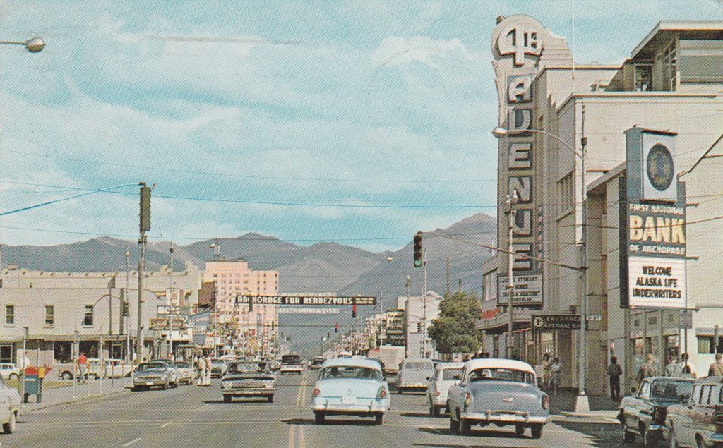 The 4th Avenue Theater in Anchorage, Alaska, was captured on a summer’s day in 1962 when Mr. Hobbs Takes A Vacation played that week. James Stewart, Maureen O’Hara, Fabian, John Saxon, and John McGiver were the stars of this lighthearted comedy. Overworked banker, Roger Hobbs (Stewart) plans an overseas trip with his wife Peggy (O’Hara). Instead, Mrs. Hobbs rents a rundown beach house so the whole family including grown children, their spouses and grandchildren can be together much to Mr. Hobbs consternation.