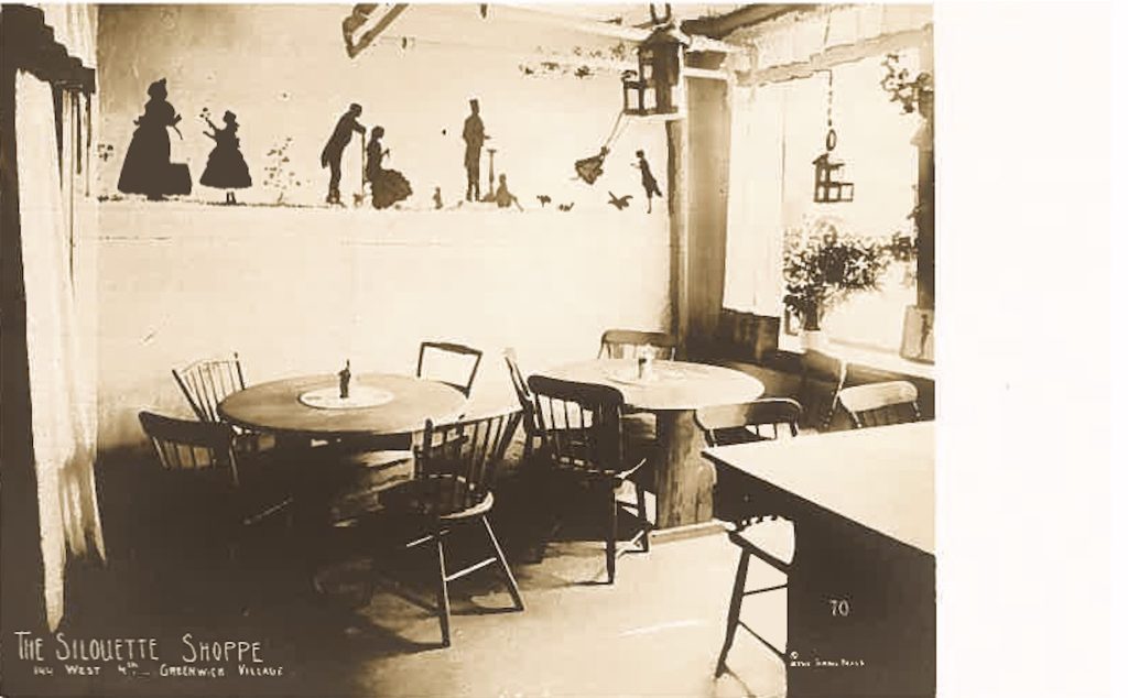 Since the start of postcard publishing, cards have been used to document the eccentric streetscapes, shops, and seductions of “The Village,” as it’s commonly known. Topics like feminism, free love, societal reorganization and artistic breakthroughs dominated the discussions of Greenwich Village’s free thinkers and we’re lucky that Jessie Tarbox Beals (1870-1942) was available to document many of the people and places animating these debates. Known as the first female photojournalist and a pioneer of nighttime photography, Beals settled in a Village studio after chronicling the World’s Fairs in Chicago and St. Louis. From that frame of reference, she showed the unique and curious hangouts where her peers spent their time and money, like the Silouette (sic) Shoppe and the Brevoort Hotel, where late-night imbroglios were staged.
