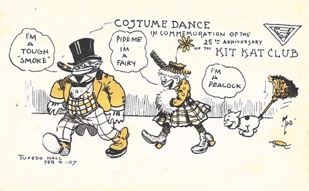 th anniversary of the Kit Kat Club held at Tuxedo Hall on February 4, 1907, must have been a spiffy affair and it is recalled in the memoirs of several stars in attendance. The Union Club, then located just above the Village was the city’s most prestigious and splendid snack-bar of the era. Its membership list read like a Who’s Who of New York’s industrialists and artists.