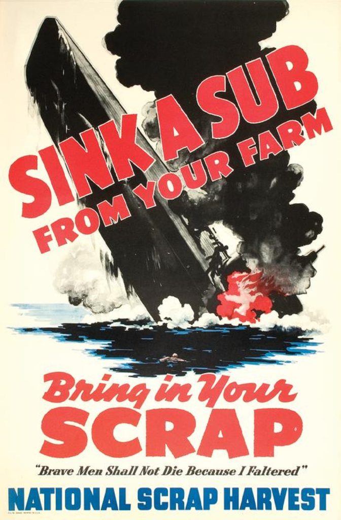The “Sink a Sub From Your Farm” card reminded me that one reason so few automobiles from the pre-World War II era survive is that many vehicles were scrapped in order to be turned into armaments.