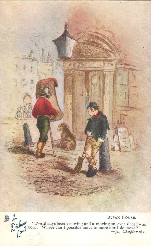 If biographical information on “Kyd” and Harold Copping is scarce, such certainly is not the case for “Phiz.” Hablot Knight Browne (born 1815, died 1882) was selected by Dickens himself to illustrate the novels from his own “verbal descriptions.” Their association continued from The Posthumous Papers of the Pickwick Club in 1837 through A Tale of Two Cities in 1859. Tuck apparently simply obtained the rights to reproduce some of these drawings on cards. Although these sets certainly appeared as early as 1905 with the regular Oilette back, some of the sets were reprinted for the Dickens Centenary in 1912 and bear a special imprint on the back. In some instances, the coloring of the regular Oilettes and the Dickens Centenary cards is quite different although the designs are the same. The “Phiz” illustrations, originally black and white engravings etched on steel plates, were apparently colored for their appearance on the Tuck cards. They are sharply delineated sketches with a heightened sense of caricature.