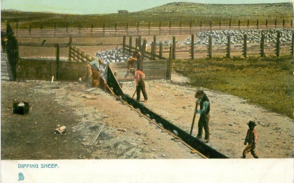 A unique and picturesque feature of sheep raising on a large scale in the southwest of America is the “dipping” of sheep to prevent and eliminate disease. The sheep are driven into great pens, from there they run single file through long narrow troughs filled with medicated preparations, and their wool becomes thoroughly soaked with the curative liquid.