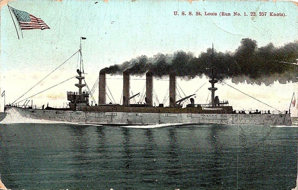 Checking even more details led me to a final determination that she was a St. Louis class cruiser, one of only three vessels in a class placed in service very early in the 20th century: around or just after the Spanish American War.