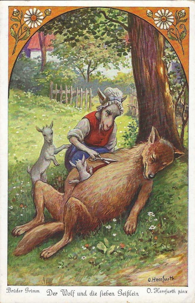 Thanks for telling the entire tale. I especially like the detail of the mother goat holding the scissors in her hoof to cut open the wolf.