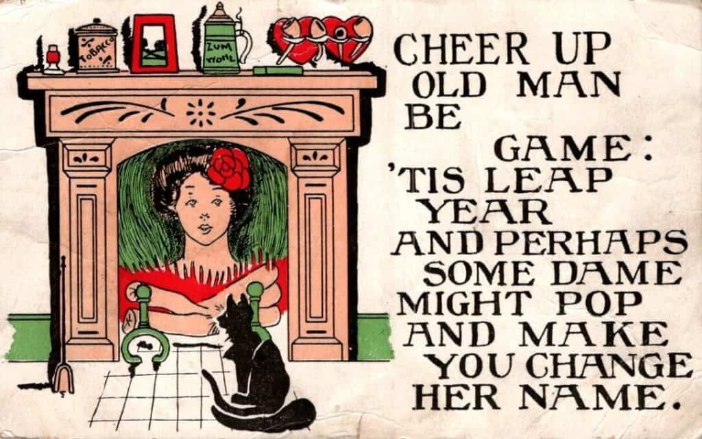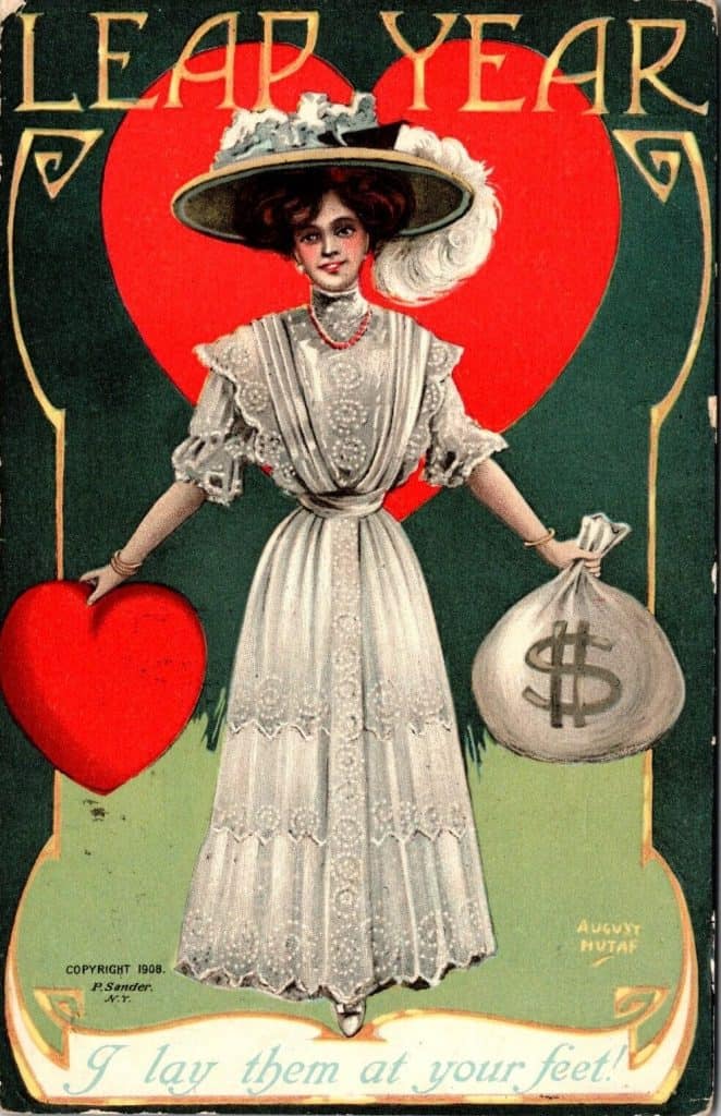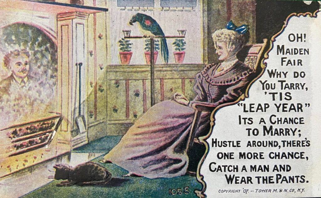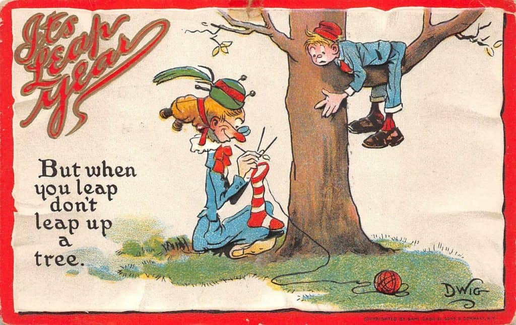 [Editor’s note: When the preparation of this article began, it was just like every other one of the nearly nine-hundred articles we have presented to our readers each Sunday, Tuesday, and Thursday since late May 2019. I do not ask for your forgiveness but would appreciate your understanding of my situation. The situation is simple, I simply forgot that Postcard History had already presented a thorough and well researched contribution on Leap Year written by our contributor Kaya Fellcheck. Kaya’s article was entitled Leap Year! One of Mankind’s Headaches and it appeared on March 2, just two days after the last Leap Day in 2020. To compound the situation, a second article entitled Leap Year, Leap Day, Leapers, and Postcards! was published on August 1, 2022. The reason I am embarrassed over the second article is that I wrote it.]