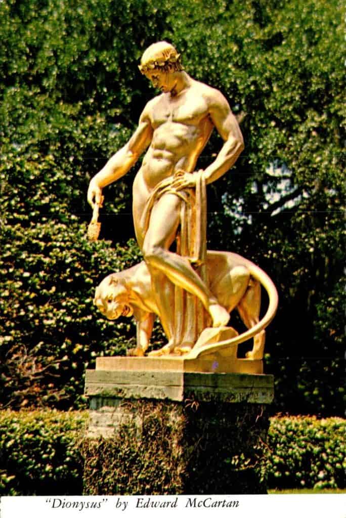 There are many cards that show Greek gods. Some serious, some comic. The only American card of Dionysus I have found is the one above showing a statue by Edward McCartan that is exhibited in the Brookfield Gardens in South Carolina.