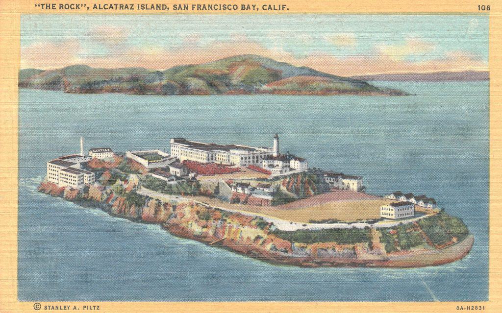 No other prison has captured the public’s imagination like Alcatraz Island. Nicknamed The Rock, it is located at the center of San Francisco Bay about 1.25 miles offshore. The island covers about twenty-two acres. The first prison located on Alcatraz was a military prison during the Civil War. Federal officials determined the island was escape proof due to swift currents around the island and the cold temperatures of San Francisco Bay. Until the Spanish American War, only a handful of prisoners were incarcerated on the island, then in 1907, it was designated as the Western Military Prison. In 1933, the military turned it over to the Justice Department, and in August 1934, the first prisoners were transferred to Alcatraz. Over the years it housed many infamous criminals including Al Capone and Robert Franklin Stroud, known as the Birdman of Alcatraz. Burt Lancaster portrayed Stroud in the 1962 film, Birdman of Alcatraz.