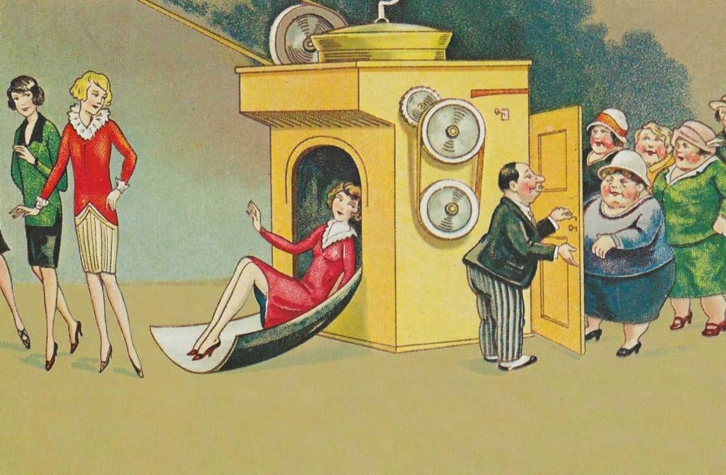 The “way-back” postcard is quite a clever play on words as “way” becomes “weigh” and those who have used the machine seem quite satisfied with the results. Equally, those who are about to use the machine anticipate the same satisfaction.
