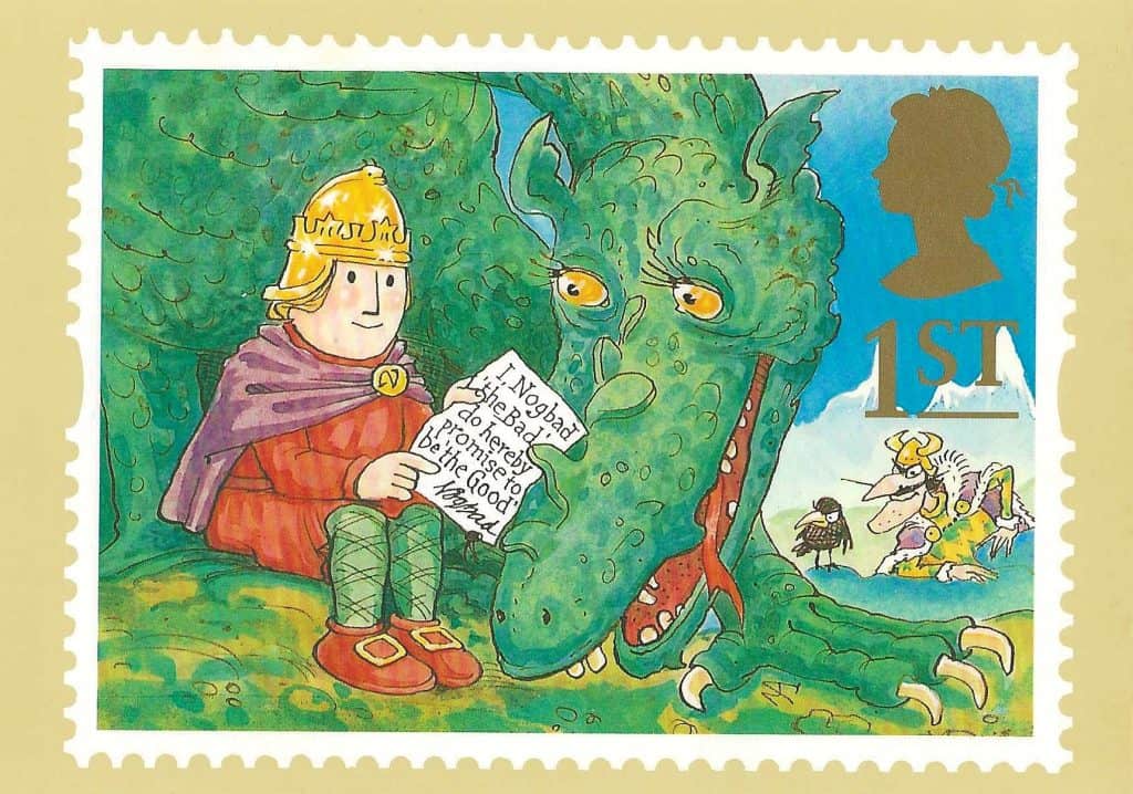 Noggin the Nog is a fictional character who appeared in a BBC Television animated series of the same name, that was originally broadcast from 1959 to 1965, and in a series of illustrated books that were published between 1965 and 1977. Oliver Postgate and Peter Firmin created both. Noggin himself is the simple, kind and unassuming “King of the Northmen” in what may be considered a Viking Age setting, with various fantastic elements such as dragons, flying machines, and talking birds.