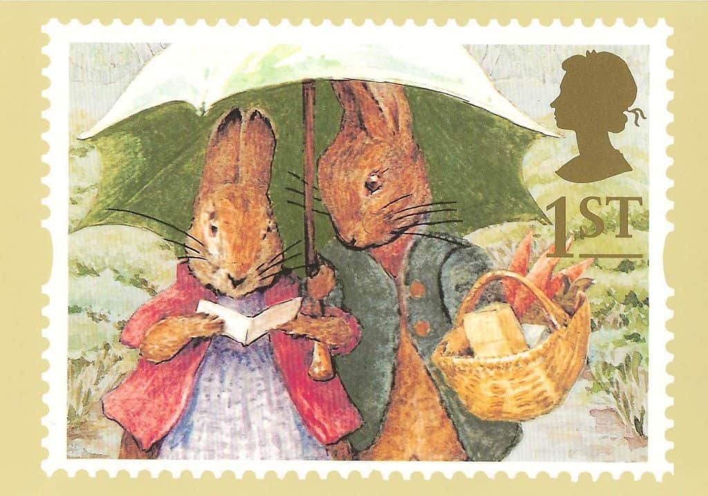 Peter and Mrs. Rabbit are totally anthropomorphic. They wear human clothes and do human things like mailing letters and go shopping on rainy days.