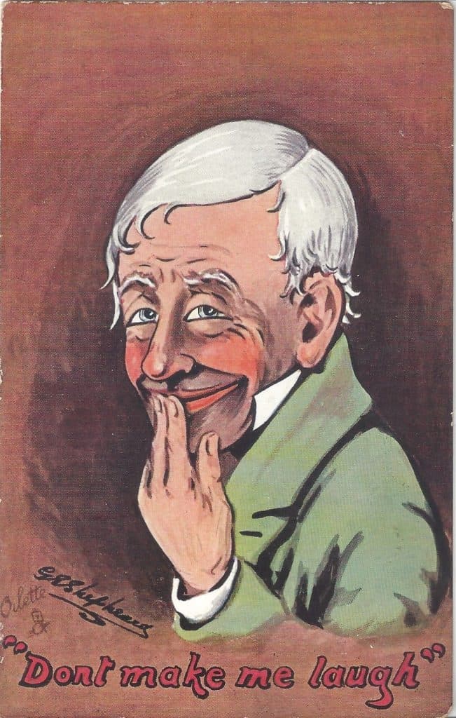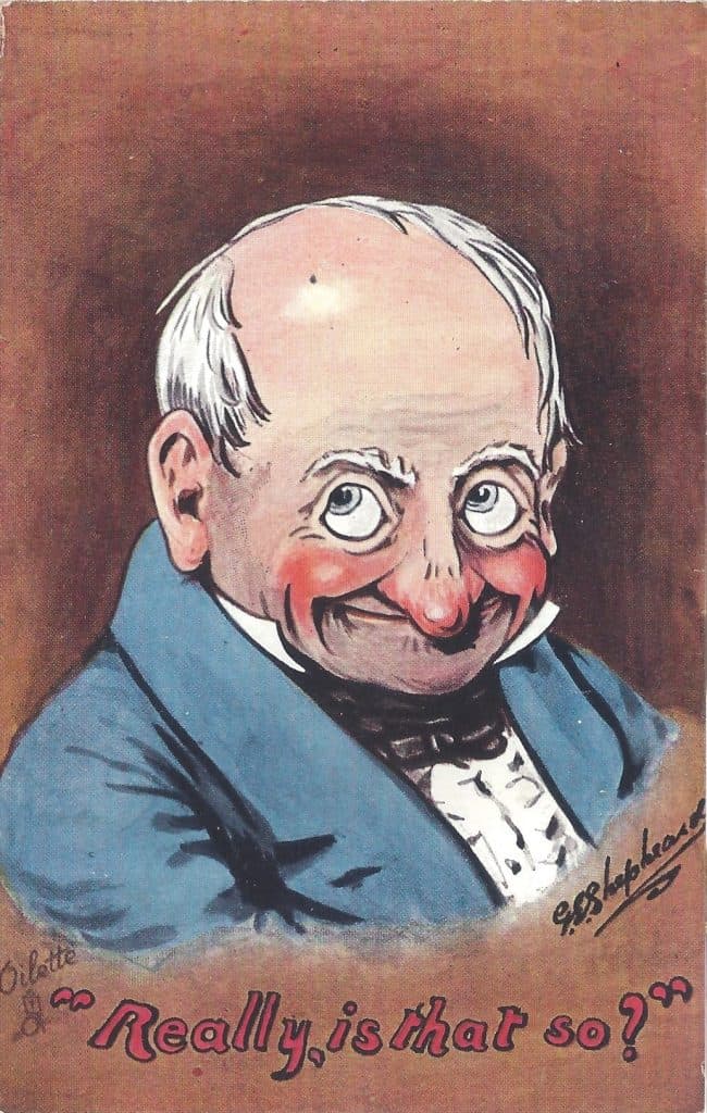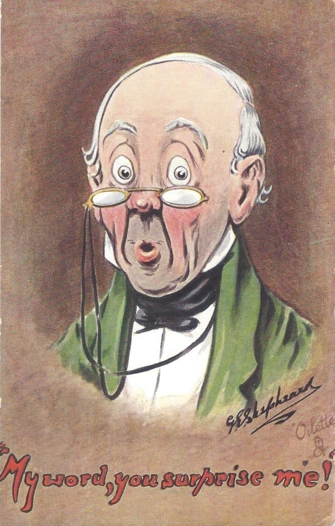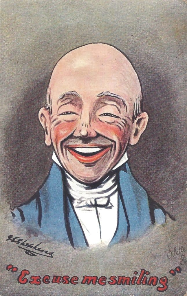 I may be alone in the postcard collecting hobby because no one else I know collects Shepheard’s postcards. The reason I do is because I’m really into facial expressions and as a professional, I think they communicate feelings better than words. Expressions are powerful forms of nonverbal communication that convey emotions and intentions. An expression consists of various movements of facial muscles that signal feelings such as happiness, sadness, anger, surprise, and disgust. Universally recognized, these expressions often serve as indications of a person’s emotional state. Some people can modify their expressions (stand-up comedians are especially good at this) but basic emotions remain similar among people everywhere. Understanding facial expressions is essential in dealing with others and usually a solid understanding can improve a connection with almost everyone. Facial expressions also play a crucial role in public speaking and storytelling.
