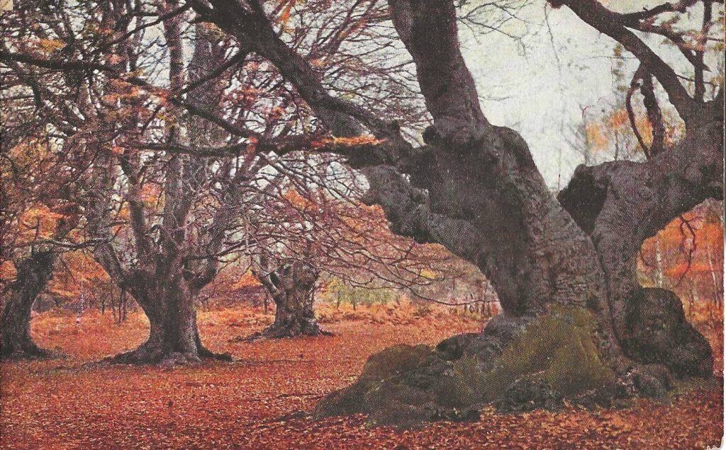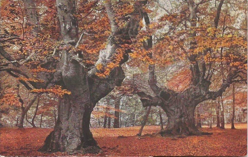 The following sample cards are not the seven oaks, but they are in Kent, England. Trees such as the ones seen on these examples are often more than 700 years old.