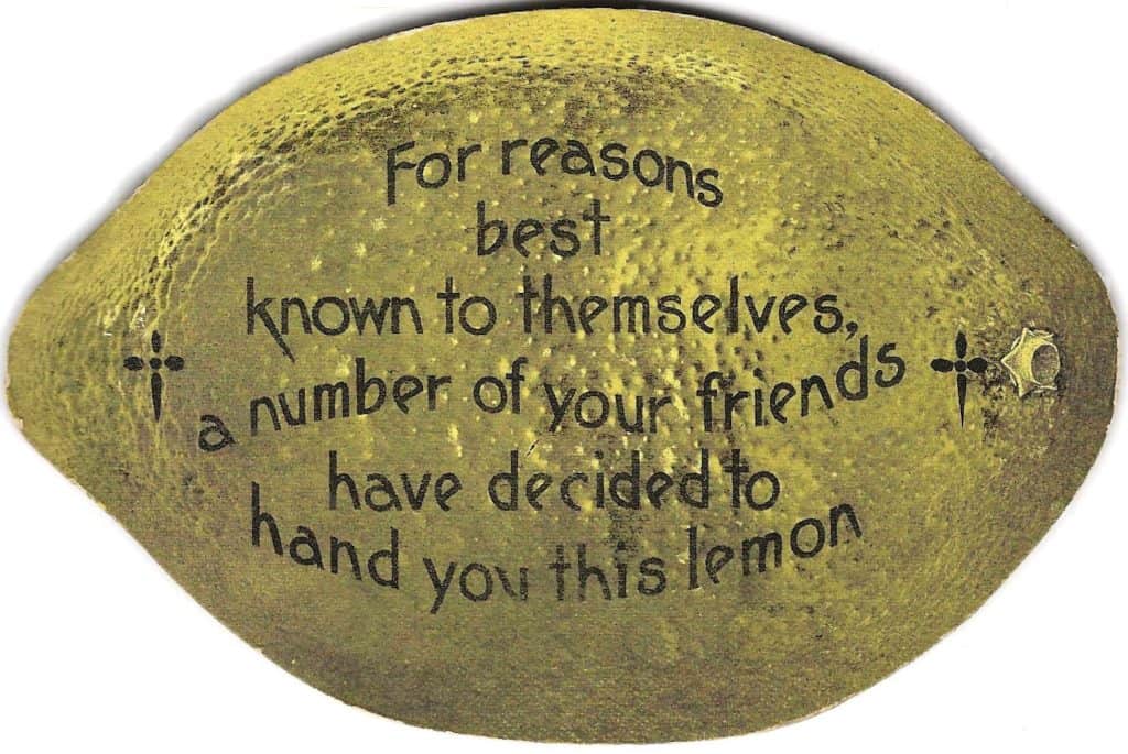 Today this lemon postcard would surely jam the high-speed postal sorting machines.