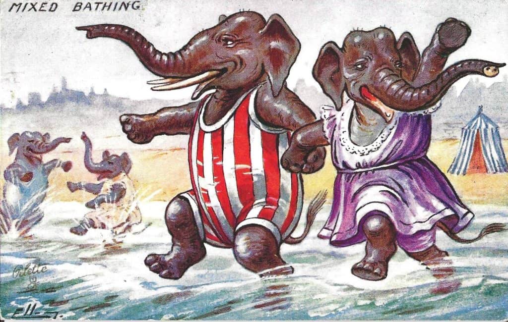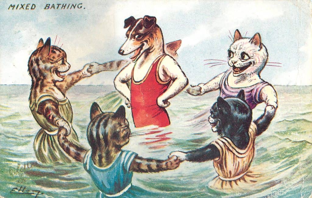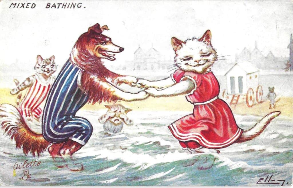 Those are incredible! I love the dog teaching the cat to swim. The poor donkey though. I thank you for the article, as I have a RPPC from 1907 “Mixed Bathing,” and I really didn’t know if that meant men and women, or races. In 1907 I guess I should have known.