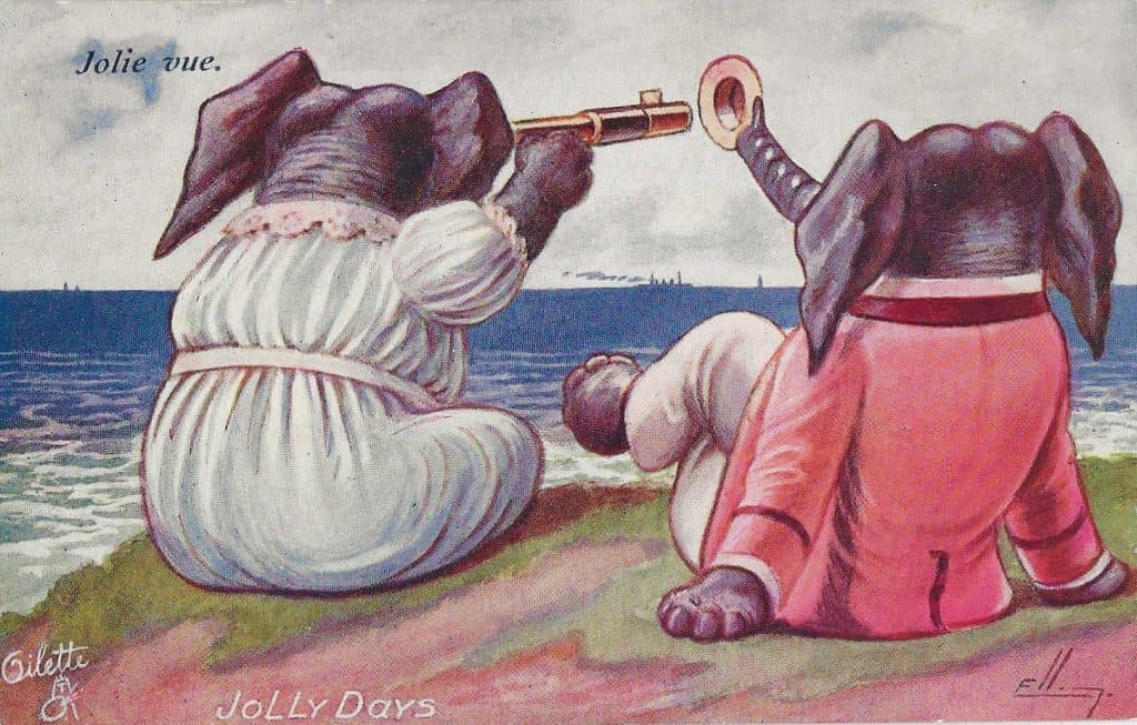 Do you know anyone who would ever imagine a more unexpected scene than two elephants, dressed in their Sunday-best, on the beach at a popular seaside resort? I do! His name was William Ellam.