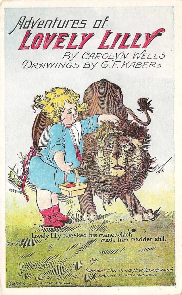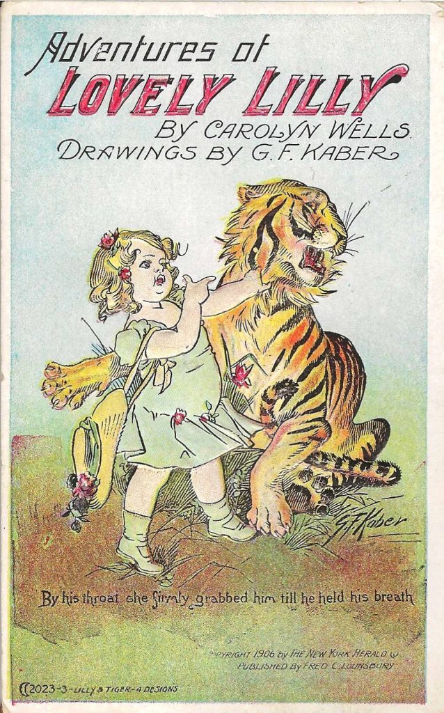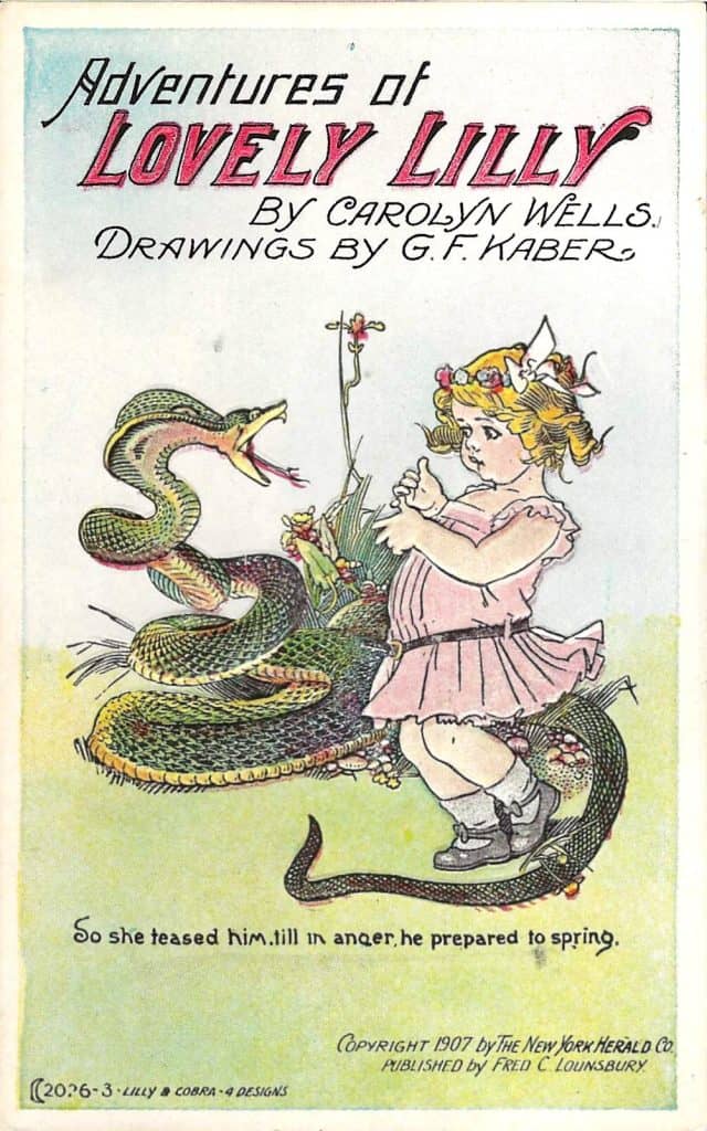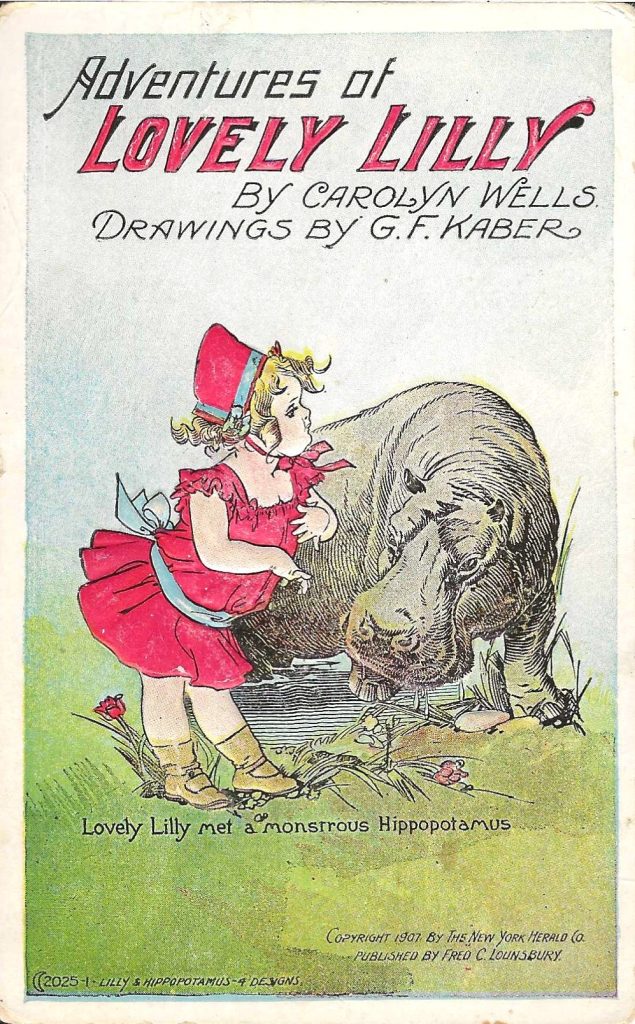 The Snake (cobra), Lion, Hippopotamus, and Tiger postcards, (sixteen cards in total) were apparently copyrighted separately in 1906 and 1907 by the New York Herald Company and published by Fred C. Lounsbury. Each card illustrates one line in the poems that make the Lilly adventures.
