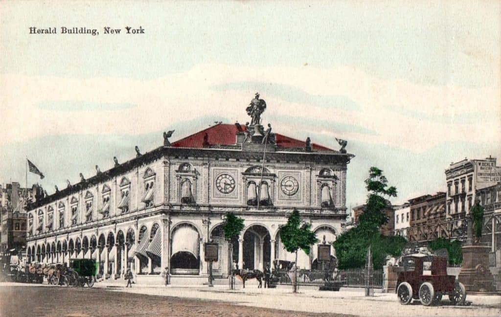 It was here in the New York Herald building (above) that it all began. No, not the Creation, but the American tradition of the Fourth Estate being free, unbiased, and without political influence. The derivation of the term arises from the traditional European concept of the three estates in a realm: the clergy, the nobility, and the commoners. The New York Herald building was located on Herald Square at the north end between West 34th and 35th streets.