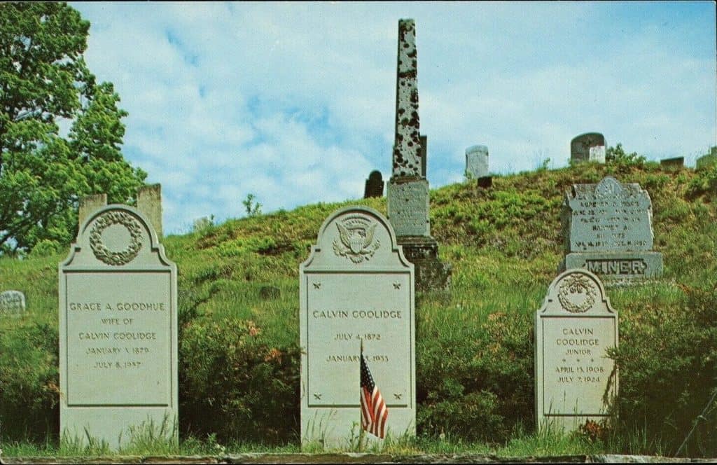 Grace Coolidge died of kyphoscoliosis and heart disease on July 8, 1957. She is buried next to Calvin and their son in the Plymouth Notch Cemetery in Plymouth Notch, Vermont.