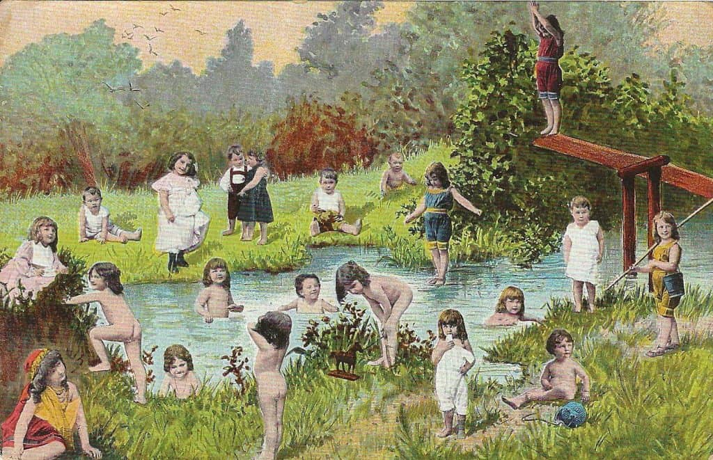Just as amusing was how the babies arrived, as seedlings in clay pots was a favorite, but coming to town in a saddlebag, splashing down from a coaster car into a pond, or being floated out of a windmill usually called up a smile.