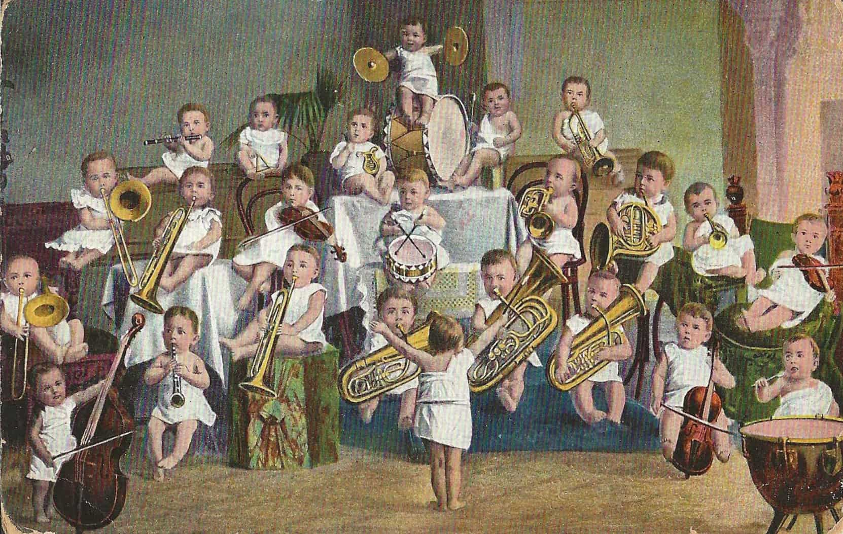The aesthetics of these postcards is another factor in their appeal. Bright colors, intricate designs, and imaginative illustrations drew attention. Often the humorous captions added an element of wit. Popular themes included babies dressed in peculiar costumes, caught in playful antics, or simply providing an overload of adorable expressions. My favorite is the All-Baby Orchestra! Card artists and publishers often played with the conventions of the time, mixing art styles that ranged from realism to whimsical caricature.