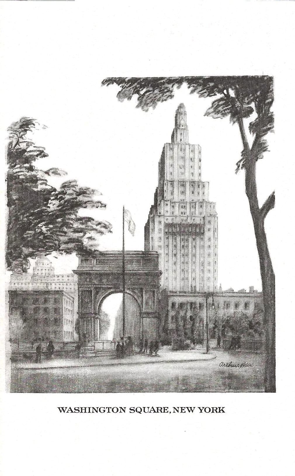 [The caption of the Arthur Hass postcard below, states that One Fifth Avenue is home of many celebrated personages in art and letters. Including Helena Bonham Carter, actress; Jessica Lange, actress; Brad Pitt, Hollywood superstar who lived there during the 1990s; Gwyneth Paltrow, actress and entrepreneur, also a resident in the 1990s; Keith Richards, legendary guitarist of the Rolling Stones; Brian De Palma, film director known for Scarface and Carrie; and James Burrows, co-creator of the hit TV show Cheers.]