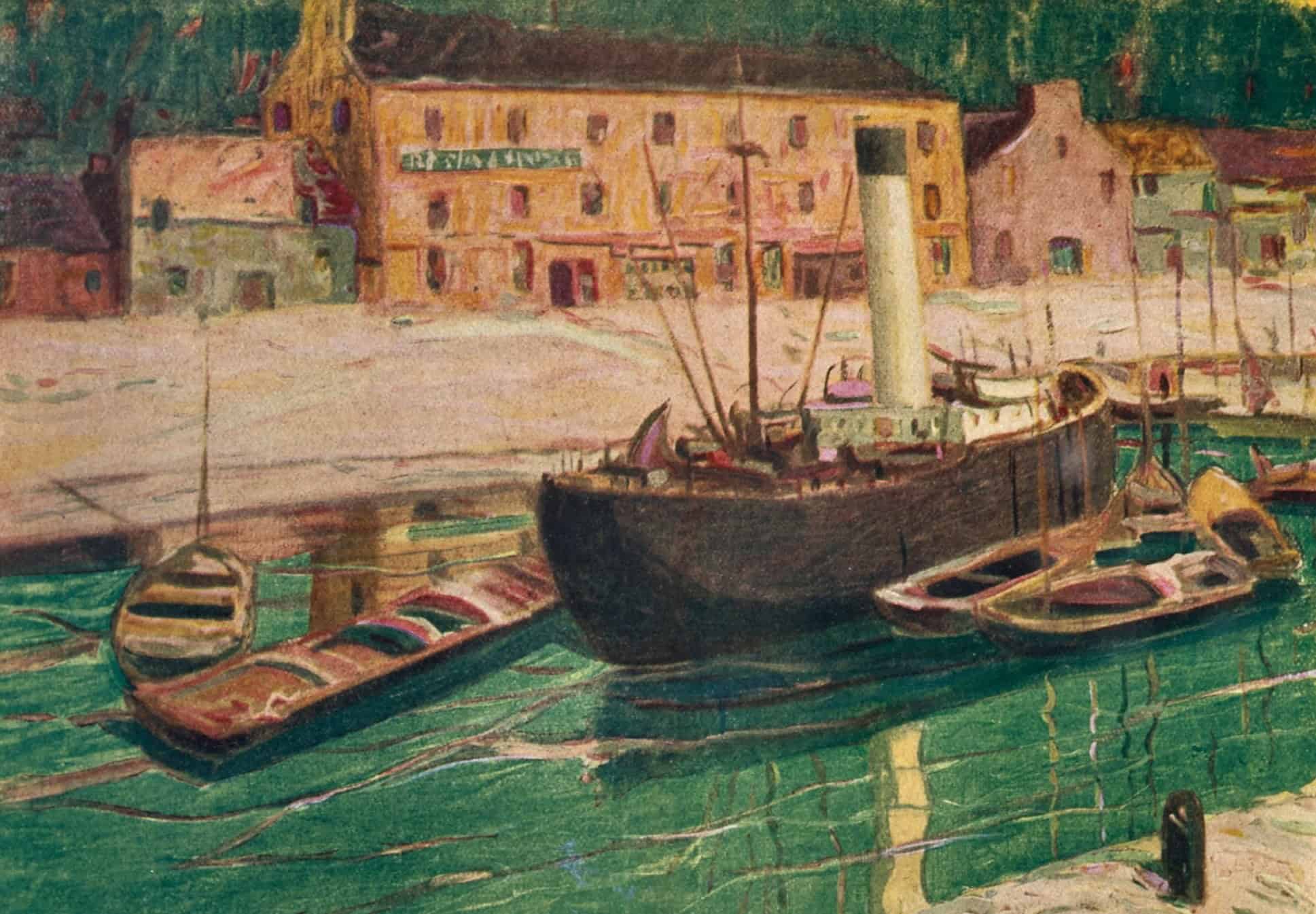 Very few of John Noble’s paintings have made their way to postcards. The images here are among the very few in my collection and I know of only two others. One of the others is his 1915 landscape of a prairie town along a river entitled Magic City at the Smithsonian Museum of American art.