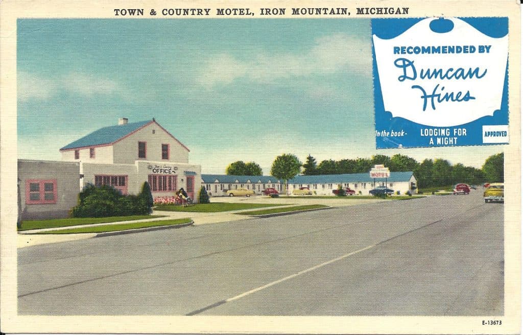 There are vintage restaurant, hotel, and motel postcards that display a recommendation by Duncan Hines. When such a card is found you can’t help but ask, “What was the connection between Duncan Hines, the cake mix company, and the restaurants, motels, and hotels that received his endorsement?”